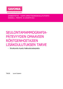 Seulontamammografiapätevyyden omaavilla röntgenhoitajilla on oikeus tehdä seulontamammografiatutkimuksia. Seulontamammografiapätevyyden saa käymällä esimerkiksi Suomen Röntgenhoitajat ry:n järjestämän seulontamammografiakurssin. Kurssi suoritetaan kerran, minkä jälkeen röntgenhoitajalla on pätevyys tehdä seulontamammografiakuvaksia. Tämän opinnäytetyön tarkoituksena on kartoittaa kvantitatiivisella tutkimusmenetelmällä seulontamammografiapätevyyden omaavien röntgenhoitajien mielipiteitä heidän tarvitsemastaan lisäkoulutuksesta. Tavoitteena on saada käsitys siitä, millaista täydennyskoulutusta tarvitaan jatkossa.