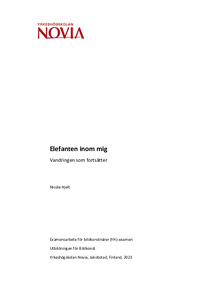 Opinnäytetyössäni pohdin polkuani kuvataiteilijaksi. Teen sen soveltamalla sitä elämääni norsujen symboliikan kautta. Teos kertoo elefantin merkityksestä kulttuurisesti, henkisesti ja suuresta merkityksestä minulle henkilökohtaisesti.