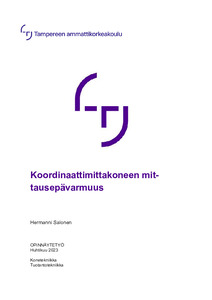 Opinnäytetyön aiheena oli käytetyn koordinaattimittakoneen mittausepävarmuuden selvittäminen. Koordinaattimittakone on tarkka ja kallis mittauslaite, joten sen ominaisuuksia on syytä selvittää. Mittausepävarmuuden ollessa tiedossa, koordinaattimittakoneen käytöstä tulee helpompaa ja varmempaa. Koneen ollessa myös opetuskäytössä siitä tulisi tietää mahdollisimman paljon niin opettajan kuin opiskelijan näkökulmasta. Kun koneen tiedot ovat selvillä, myös mittauspalveluiden myyminen ulkopuolisille toimitsijoille muuttuu helpommaksi.