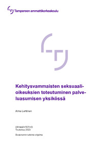 Opinnäytetyössä tutkittiin, toteutuvatko kehitysvammaisten asiakkaiden seksuaalioikeudet palveluasumisen yksikössä työntekijöiden näkökulmasta. Tutkimuksessa selvitettiin, mitkä tekijät vaikuttavat seksuaalioikeuksien toteutumiseen ja kuinka toteutumista tuetaan käytännössä. Lisäksi selvitettiin, tuntevatko työntekijät seksuaalioikeudet, jotta he voivat ylipäätään tukea niiden toteutumista.