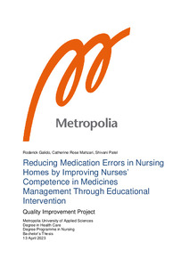Intervention: The quality of care and the safety of patients are heavily linked to nurses' competence in medicine management and drug delivery. Medication administration by nursing home staff nurses requires special caution. To improve nurses' medication administration competence and reduce medication errors, the goal of this quality improvement project is to implement the Medication Administration Competence Programme, which combines on-the-job training with regular educational sessions on medicines management and safe medication administration to elderly patients.
