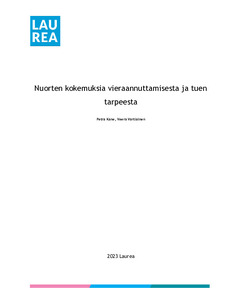 Opinnäytetyön tarkoituksena oli selvittää nuorten kokemuksia vieraannuttamisesta ja avun tarpeesta, ja tavoitteena oli lisätä tietoa vieraannuttamisesta. Opinnäytetyön tutkimuskysymyksinä oli, minkälaisia kokemuksia nuorilla on vieraannuttamisesta ja minkälaista tukea nuoret kaipaavat ammattilaisilta vieraannuttamisen keskellä. Opinnäytetyön työelämäkumppanina toimi Ensi- ja turvakotien liitto.