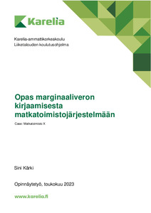 Opinnäytetyön aiheena on marginaaliveron oikeaoppinen kirjaaminen matkatoimistojärjestelmään. Opinnäytetyö tehtiin toimeksiantona matkatoimistoyritykselle. Tavoitteena oli selkeyttää verotusta marginaaliveron ja yhteisökaupan näkökulmasta. Tavoitteen täyttämiseksi opinnäytetyön tuloksena on kirjoitettu opas yritykselle, joka selkeyttää marginaaliveron oikeaoppista kirjaamista matkatoimistojärjestelmään. Opinnäytetyössä on käsitelty myös, mitä tuotteistaminen tarkoittaa ja miten siihen tulisi suhtautua.