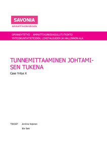 Tunteiden johtaminen on tärkeää sekä työntekijän hyvinvoinnin että yrityksen menestymisen kannalta. Kun tunteita johdetaan oikein ja työntekijöiden hyvinvointiin panostetaan, syntyy hyvinvoiva ja motivoitunut työyhteisö, joka on avain yrityksen menestykselle. Tämän opinnäytetyön tavoitteena oli selvittää kohdeorganisaation tunneilmaston ja tunnejohtamisen nykytila sekä luoda kohdeorganisaatiolle konkreettisia kehitysehdotuksia tunnejohtamisen kehittämiseen.