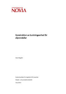 På grund av att buntningsenheten har flera delfunktioner gjordes delkoncept till varje funktion. Resultatet består av både nya lösningar och vidareutvecklade befintliga lösningar till de olika delfunktionerna. Resultatet blev en fullständig sammanställning av delkoncepten som i sin helhet uppfyller de krav som ställts. This thesis was done on behalf of Mirka Ab as a commissioned project. The work was done at the company's construction department in Oravais. Mirka is a company that develops and produces high-quality abrasive materials and abrasive tools. Mirka is a large employer with over 1,400 employees and 18 subsidiaries around the world.