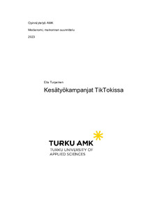 Tämän opinnäytetyön tavoitteena on selvittää, millaista on hyvä ja toimiva kesätyökampanjointi TikTokissa tuoden samalla esille TikTokin ominaisuuksia mainonnan kanavana. Tutkimuskohteina ovat Lidlin ja Burger Kingin kesätyökampanjat. Opinnäytetyössä käytetään verkkolähteitä ajantasaisen tiedon saamiseksi. Lisäksi tarvittavan taustatiedon ja kohderyhmän näkemyksen saamiseksi haastatellaan Lidlin työnantajabrändistä vastaavaa Elina Sallaa sekä kesätyöikäisiä nuoria.
