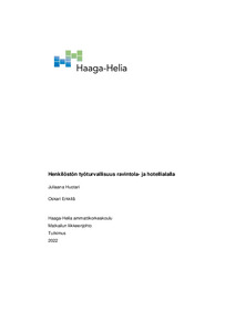 Tämä opinnäytetyö käsittelee henkilöstön työturvallisuutta ravintola- ja hotellialalla. Tutkimme opinnäytetyössä työturvallisuutta ja -hyvinvointia ja miten turvalliseksi työntekijät alan ja työnsä kokevat.