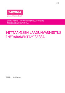 Opinnäytetyö oli laadullinen tutkimus mittaamisen laadunvarmistuksesta infrarakentamisessa. Toimeksiantajana oli Maansiirto Viiala Oy, jonka toimiala on maanrakennus ja maansiirto. Opinnäytetyön tavoitteena oli