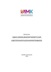 Tutkimuksesta tuli ilmi, että suurin osa anestesiahoitajista käyttivät hyvin ISBAR-kommunikointimenetelmää antaessaan raporttia. Tutkimus osoittaa, että ISBAR-menetelmää käytetään osittain hyvin, mutta kaikkia kohtia ISBAR-kommunikointimentelmästä ei käytetä riittävästi. Tutkimustulokset anestesiahoitajien ISBAR-kommunikointimenetelmän käytöstä vahvistavat aikaisempaa tutkimustietoa. The purpose of this bachelor ‘s degree was to find out how a nurse anaesthetist uses ISBAR-communication method when reporting. The aim was to produce in-formation about the use of ISBAR-communication method and to increase the knowledge of their own reporting and to find out ways to develop reporting and to improve patient safety in this way.