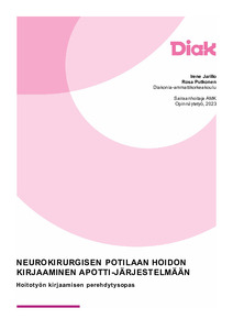 Opinnäytetyömme tarkoituksena oli helpottaa perehtymistä Apotti-järjestelmään tuottamalla neurokirurgiselle osastolle hoitotyön kirjaamisen perehdytysopas. Opinnäytetyömme teoriaosassa keskityimme hoitotyöhön perehdyttämiseen ja hyvän perehdytysoppaan tekemiseen, hoitotyön kirjaamiseen, Apotti-järjestelmään, FinCC-luokituskokonaisuuteen sekä neurokirurgisen potilaan hoitotyöhön. Opinnäytetyömme tavoitteena oli auttaa perehtymään neurokirurgiseen potilaaseen ja selkeyttää käsitystä siitä, mitä potilaasta pitää ennen leikkausta ja leikkauksen jälkeen vuodeosastolla huomioida ja kirjata. Tavoitteena oli, että kirjaamisen perehdytysopas yhdenmukaistaisi osaston hoitohenkilökunnan kirjaamistapoja.