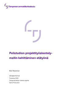 Opinnäytetyön tarkoituksena oli tarkastella, kuinka pelituotannon asiakasprojektia voidaan toteuttaa etätyöskentelymallia hyödyntäen. Työn tavoitteena oli kehittää opiskelijoille kirjallinen ohje, miten etätyöskentely pelituotannon asiakasprojektissa käytännössä toimii. Lisäksi ketterää etäprojektityöskentelymallia voivat hyödyntää myös ulkopuoliset tahot.