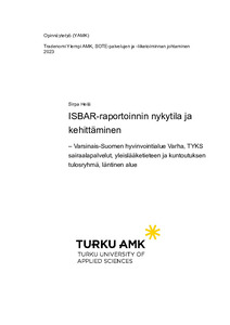 Tutkimuksen tuotoksena syntyi ISBAR-menetelmän käytön kehittämissuositukset, jotka esitellään seudullisen potilasturvallisuuden ohjausryhmälle. Kehittämissuosituksiksi tulosten pohjalta muodostui lisäkoulutuksen suunnittelu ja järjestäminen hoitohenkilökunnalle sekä taskukortin tai muistilistan kehittäminen tutkimuksen kohteina olleiden yksiköiden tarpeisiin sopivana mallina sekä ISBAR-menetelmän yhtenäinen käyttöönotto koko toimialueella. The aim and purpose of this thesis was to find out the current state of use of the ISBAR-method, and to find development targets to improve the efficiency and harmonisation of the use of the ISBAR-reporting tool and to improve patient safety. The study was commissioned by the Hospital of Vakka-Suomi. The study focused on the wards 1 and 2 of Uusikaupunki local hospital, the nursing department of Laitila, the nursing department of Masku, the acute and rehabilitation department of Raisio and the nursing department of Naantali. The results of the studies were analysed using a quantitative statistical analysis method.