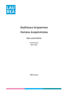 Opinnäytetyön tarkoituksena oli tehdä opas osallistavasta kirjaamisesta Humana Avopalveluiden perheohjaajille. Osallistava kirjaaminen on dokumentoinnin menetelmä, jolla tarkoitetaan asiakkaan mukaan ottamista kirjaamisprosessiin. Opinnäytetyön tavoitteena oli vahvistaa työntekijöiden osaamista osallistavassa kirjaamisessa. Kehittämistehtäväksi asetettiin selkeä ja käytännönläheinen opas, joka esittelee menetelmää yleisestä näkökulmasta. Oppaan avulla voidaan perehdyttää työntekijöitä menetelmän käyttöön ja tukea osallistavan kirjaamisen vakiinnuttamista Humanan käytännön työssä.
