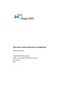 Hotellille tein aikaisemmin työharjoittelua, ja toimeksiantoa Haaga-Helian kurssilla, jonka pohjalta idea opinnäytetyöhön lähti. Alkulähtötilanteena hotellin Instagramissa oli 85 seuraajaa, ja niitä saatiin kasvatettua toivotusti. Opinnäytetyössä käsitellään sosiaalista mediaa, markkinointia, brändin kehitystä sekä perehdytään produktiin sisältyviin julkaisuihin ja Instagramiin.