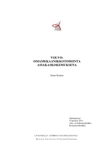 Opinnäytetyön aiheena on tutkia Volvon kehittämää omamekaanikkokonseptia asiakaskokemuksena ja kartoittaa prosessin kehityskohteita. Opinnäytetyön aineisto kerättiin asiakastyytyväisyyskyselyä pohjana käyttäen kahdella tavalla, haastattelemalla Käyttöauto Oy:n Tampereen toimipisteen kahdeksan omamekaanikon asiakkaita sekä asiakkaiden itse täyttämien lomakkeiden pohjalta Käyttöauto Oy:ssä Tampereella toukokuun 2014 aikana.