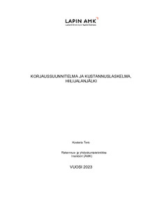 Syksyllä 2022 tehtiin kuntoarvio vuonna 1974 Ranualle rakennettuun yksi kerroksiseen omakotitaloon. Kuntoarviossa esille nousi vesikattorakenteessa havaitut kosmeettiset viat sekä huopakatteen teknisen käyttöiän päättyminen. Opinnäytetyön tarkoituksena oli laatia korjaussuunnitelma ja kustannuslaskelma vesikattorakenteen uusimiselle. Lisäksi kohteessa käytetyille materiaaleille laskettaisiin elinkaarenaikainen hiilijalanjälki.