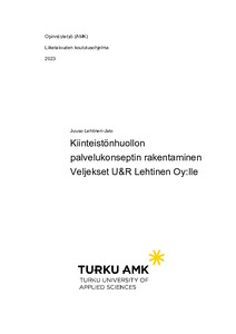 Tämän opinnäytetyön tarkoituksena oli luoda Veljekset U&R Lehtinen Oy:lle kiinteistönhuollon palvelukonsepti. Opinnäytetyöntekijä toimii yrittäjänä kyseisessä yrityksessä, ja samalla työn toimeksiantajana. Tavoitteena oli rakentaa palvelukonsepti, jonka avulla yritys voi laajentaa toimintaansa kiinteistönhuoltoon ja samalla erottua kilpailijoista. Kehitystyön tarve nousi esiin tekijän omasta halusta laajentaa yrityksensä toimintaa kiinteistönhuoltoon, jonka vuoksi yritys tarvitsee kiinteistönhuollon palvelukonseptin. Uuden palvelukonseptin avulla yrityksen toiminnan laajentaminen uusille markkinoille on mahdollista.