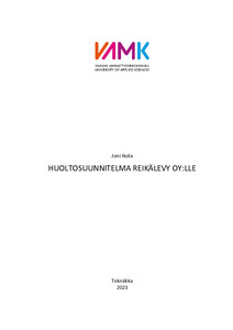 Työn tuloksena saatiin tehtyä yksinkertainen Excel-ohjelma huoltojen seuraamiseen. Huoltosuunnitelmia noudattamalla koneiden ja laitteiden vikaantumisen riski pienenee ja tuotannon kokonaistehokkuus paranee. In this thesis, maintenance plans were created for the most important machines and equipment in Reikälevy Oy’s production. The maintenance plans are specific for each machine or equipment, and they include scheduled maintenance tasks ranging from daily tasks to annual maintenance.