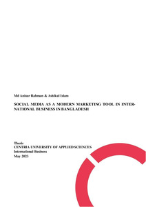 This thesis aims to explore the potential of social media as a modern marketing tool in international business in Bangladesh. It will focus on the advantages and disadvantages of utilizing social media networks such as Facebook, Twitter, Instagram, and LinkedIn as marketing tools to reach international customers. The research will assess the effectiveness of these tools in terms of customer engagement, cost-effectiveness, and brand awareness. It will determine the current social usage and analyze this technology's impact on their operations. The study will also explore the opportunities and challenges companies in Bangladesh face when using social media for marketing.
