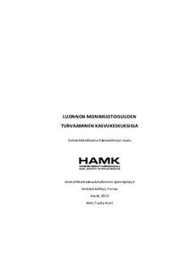 Tässä tutkimuksellisessa opinnäytetyössä oli tavoitteena selvittää, millä keinoilla kasvukeskuksissa voidaan turvata luonnon monimuotoisuutta. Työn tutkimuskohteena oli Hämeenlinnan kasvukeskus, johon sovellettiin tapaustutkimusmetodia. Työn toimeksiantajana toimi kansalaisjärjestö Hämeenlinnan seudun luonnonsuojeluyhdistys ry, joka pyrkii järjestötoiminnallaan edistämään luonnon monimuotoisuutta Hämeenlinnan alueella.