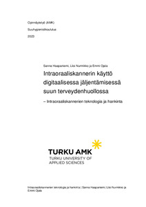 Opinnäytetyö on toteutettu toiminnallisena opinnäytetyönä. Tässä opinnäytetyössä laadittiin teoreettiseen viitekehykseen osuus nimeltään Intraoraaliskannerien teknologia ja markkinat Suomessa. Teoriaosuus käsittelee kymmenen eri intraoraaliskannerin teknologioita, niiden hankintaa ja jakautumista suun terveydenhuollossa.