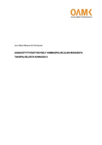 Tämän opinnäytetyön tarkoituksena oli tutkia, millainen saatavuus vammaispalvelulain mukaisilla taksipalveluilla on eräässä Suomen kunnassa ja kuinka palvelua voitaisiin mahdollisesti kehittää. Opinnäytetyön toimeksiantaja ei halunnut julkaista yrityksen nimeä opinnäytetyössä. Myöskään kyseisen kunnan nimeä ei julkaista työssä. Kyselylomake toteutettiin osaksi yhteistyössä kunnan sosiaalipalvelun työntekijän kanssa. Opinnäytetyön tavoitteena oli saada toimeksiantajalle tietoa taksipalveluiden saatavuudesta sekä palvelun toimivuudesta.