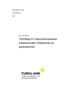 Tämä opinnäytetyö suoritettiin toimeksiantona KONE Industrial Oy:lle. Tässäopinnäytetyössä mitattiin toimittajan lähettämien tilausvahvistuksien luotettavuutta. Tilausvahvistuksien luotettavuus on yksi toimittajan suorituskykyä arvioiva mittari, jolle on olemassa yrityksen määrittämä vähimmäistaso.