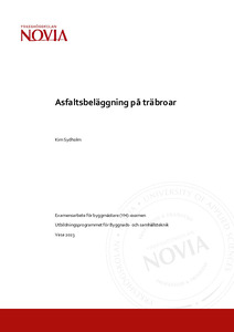 Opinnäytetyössä käsitellään puusiltojen asfaltointi. Asfaltilla päällystetyt puusillat ovat harvinaisempia kuin perinteiset betonisillat. Vuosittain suunnitellaan pieni määrä puusiltoja, joka asfaltoidaan ja sen takia haluan nostaa esille tämä aihetta. Tarkoituksena on antaa käsitystä siitä, miten puusiltojen asfaltointi suoritetaan. Opinnäytetyössä korostan asfalttia materiaalina ja miten asfaltointityöt suoritetaan puusillalla ja siihen liittyen olevat vaatimukset. Työssä kerron myös ongelmista ja muita esteistä mitä havaittiin projektin edistämisessä.