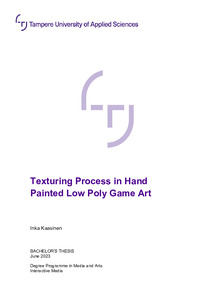 The objective of this thesis was to research low poly modeling and the implementation of complex and stylized hand-painted textures onto a low poly 3D game model. The study also approached what kind of production methods could be suitable for independent game developers, hobbyists, or other people with limited resources and budgets.