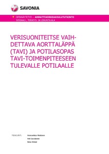 Kuopion yliopistollisen sairaalan (KYS) Sydänkeskus antoi aiheen tehdä potilasopas TAVI-toimenpiteeseen tule-valle potilaalle. Sydänkeskuksella ei ole vielä potilasopasta toimenpiteeseen liittyen, joten opas tulee tarpeeseen. Teoreettisena lähtökohtana opinnäytetyöhön toimi aorttaläppäahtauma sairautena, TAVI-toimenpide ja poti-lasopas. Yhteistyökumppanina toimi Kuopion yliopistollisen sairaalan Sydänkeskus.