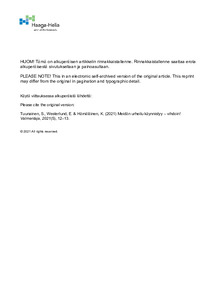 Tuunainen, Sari; Westerlund, Erkka; Hämäläinen, Kirsi (2021)