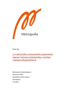 Opinnäytetyö on luonteeltaan monimuotoinen opinnäytetyö, jonka tarkoituksena on selkeyttää nuorten vastaanotossa työskentelevien ammattilaisten työskentelyä luvattomilta poissaoloilta palautettujen muualle sijoitettujen lasten kanssa. Tavoitteena oli luoda työryhmille yhteinen opas, joka on hyödynnettävissä työskentelyn jokaiseen eri vaiheeseen.