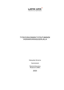 Opinnäytetyön aiheena oli työhyvinvoinnin toteutuminen vieraanvaraisuusalalla. Toimeksiantajana toimi Gustav Kitchen & Bar, joka on rovaniemeläinen vuonna 2020 avattu ravintola. Opinnäytetyön tehtävänä oli selvittää, kuinka työhyvinvointi toteutuu käytännössä ravintola-alan työpaikalla, Gustav Kitchen & Barissa. Tavoitteena oli luoda kyselyn avulla ajantasainen kokonaiskuva työhyvinvoinnin toteutumisesta ja luoda sen pohjalta toimenpide-ehdotelma toimeksiantajalle sen ylläpitämiseksi ja edistämiseksi.