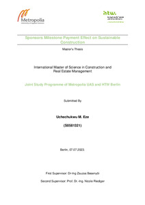 Sponsors Milestone Payment Effect on Sustainable Construction