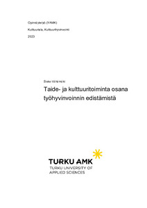 Tavoitteena opinnäytetyössäni oli selvittää, miten Suomessa taide- ja kulttuuritoimintaa hyödynnetään työhyvinvoinnin edistämisessä ja minkälaista toimintaa työhyvinvointipalveluina on tarjolla. Olemassa olevan toiminnan laajuus ja muodot esitellään perustuen kirjallisuuteen, hankeraportteihin, asiantuntijoiden haastatteluihin ja taidetoimintaa tarjoaville toimijoille suunnattuun kyselyyn. Lisäksi tavoitteena oli luoda uusi työhyvinvointia edistävän taidetoiminnan malli.