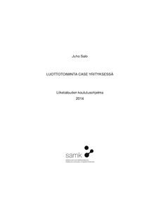 Opinnäytetyössä tutkittiin luottotoimintaa rautakauppaa harjoittavassa case yrityksessä. Tavoite oli selvittää kohdeyrityksen nykyinen tilanne luotolla myynnistä asiakasyrityksille. Miten luotolla myyntiä käytännössä valvotaan ja kuinka riskienhallinta luottotappioiden suhteen tapahtuu.