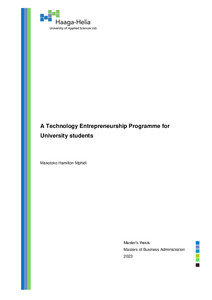 b) Conceptual model for implementing the Technology Entrepreneurship Programme. This study will benefit universities or other institutions of higher learning in the process of developing and implementing entrepreneurship program into their curriculum. The study concluded with reflections on some of the strengths and weaknesses of the theoretical and methodological approaches taken. The study also focused on evaluating the outcomes of the development project and provide conclusions on its benefits to the organisation. It also provided recommendations for further research and highlighted the limitations of the study.