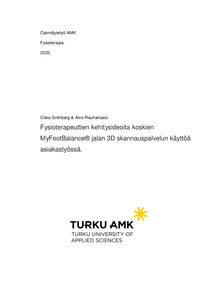 Tämän opinnäytetyön tarkoituksena on tutkimuskyselyn avulla kerätä fysioterapeuttien kehitysideoita koskien MyFootBalance® jalan 3D skannauspalvelun käyttöä asiakastyössä. Tuloksia hyödynnetään uuden Medical konseptin 3D jalan skannauspalvelun kehittämiseen, jonka tavoitteena on kehittää laitetta terveydenhuollon ammattilaisille, erityisesti fysioterapeuteille soveltuvammaksi asiakastyöhön.