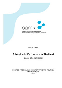 The purpose of this thesis was to examine the current wildlife tourism practices in Thailand with respect to elephant encounters by assisting Finnish tourism operators in their efforts to raise awareness, promote ethical practices, and encourage responsible behaviour among tourists. The thesis was carried out as a commission for Ekomatkaajat.