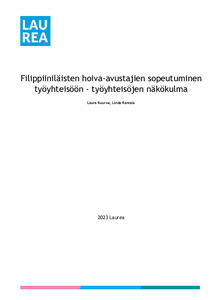 Tämän opinnäytetyön tarkoituksena oli tuottaa Keski-Uudenmaan hyvinvointialueelle tietoa siitä, miten heidän rekrytoimansa filippiiniläiset hoiva-avustajat ovat sijoittuneet työyhteisöönsä, työyhteisön näkökulmasta. Tavoitteena oli selvittää, mitkä asiat ovat tukeneet työyhteisöön sopeutumista, mitkä toisaalta estäneet sitä ja miten filippiiniläisten hoiva-avustajien sopeutumista voitaisiin edelleen edistää. Tutkimusta tukeva tietoperusta käsitteli hoiva-avustajan roolia sekä kansainvälistä rekrytointiprosessia suomalaisessa terveydenhuollossa, työhyvinvointia ja työyhteisöön sopeutumiseen vaikuttavia tekijöitä, sekä aikaisempaa tutkimusta ulkomaisten hoitajien sopeutumisesta suomalaiseen työyhteisöön.