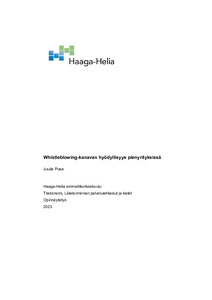 Opinnäytetyön tarkoituksena oli löytää hyödylliset seikat Whistleblowing-kanavan perustamisessa pienyrityksen näkökulmasta. Whistleblowingilla tarkoitetaan laittomista asioista tai väärinkäytöksistä ilmoittamista. Ilmoittajan suojelua varten perustettavat organisaatioiden sisäiset ilmoituskanavat lisääntyvät pitkin vuotta 2023 sitä velvoittavan lainsäädännön takia. Pien- ja mikroyritykset ovat suljettu kansallisen lainsäädännön soveltamisalan ulkopuolelle.