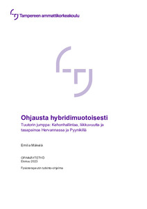 Opinnäytetyö pyrki selvittämään hybridiohjauksen mahdollisuuksia ja haasteita ikääntyneiden liikuntaryhmän ohjauksessa tamperelaisissa senioritaloissa. Senioritaloissa toteutettiin kuuden kerran tasapainokurssi, johon puolet osallistujista liittyi etänä ja puolet osallistui läsnä ohjaajan kanssa. Kokemuksia kartoitettiin kyselylomakkeiden avulla. Lomakkeet kerättiin jokaisen ohjauskerran jälkeen osallistujilta.