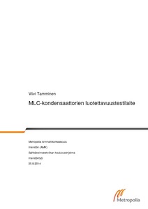 Tässä insinöörityössä tutkitaan keraamisten kondensaattorien vikamekanismeja ja luotettavuutta. Työn tavoitteena on suunnitella testilaite sadalle keraamiselle kondensaattorille. Testilaiteen avulla pystytään todentamaan mahdolliset eroavaisuudet eri kondensaattori-valmistajien tai valmistuserien välillä. Teoriaosuudessa on pääasiallisesti keskitytty kondensaattoreissa esiintyviin vikamekanismeihin ja kondensaattorien luotettavuuteen yleisesti. Testilaitteen suunnittelu toteutettiin käyttämällä PADS logic- ja PADS layout -ohjelmistoja.