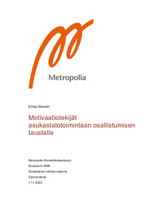 Tämän opinnäytetyön tarkoituksena oli tutkia mitkä tekijät motivoivat Naapuruustalo Mellarin kävijöitä osallistumaan toimintaan ja järjestämään sitä. Naapuruustalo Mellari on Mellunmäessä Helsingissä sijaitseva asukastalo, joka toimii matalan kynnyksen kohtaamispaikkana alueen asukkaille. Sen tarkoituksena on edistää osallisuutta, yhteisöllisyyttä ja ehkäistä syrjäytymistä. Tarve opinnäytetyön aiheelle tuli työelämäyhteistyökumppanilta Mellarilta. Motivaatiotekijöiden selvityksen tarkoituksena on löytää Naapuruustalo Mellarille tietoa, jonka avulla toimintaa voidaan kehittää asiakaslähtöisemmäksi ja auttaa myös kävijöitä osallistumaan ja sitoutumaan toimintaan.