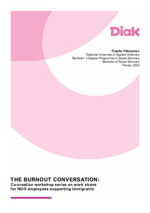 This thesis examines the development and execution of "The Burnout Conversation", a series of two workshops rooted in co-creation and design thinking frameworks. The workshops were designed to promote open discussion and facilitate collaboration on burnout prevention strategies among NGO employees working with immigrants. The need for this development project was determined through academic literature, previous surveys done in Finland, as well as dialogues with professionals in the field. The project was conducted in collaboration with Moniheli, a Finnish nationwide multicultural network.