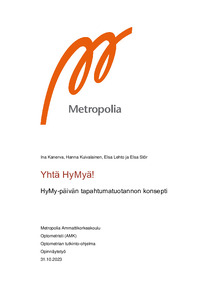 Opinnäytetyö toteutettiin yhteistyössä Metropolia Ammattikorkeakoulun kanssa. Toiminnallinen opinnäytetyö nojautuu palvelumuotoilun Tuplatimantti-malliin, tapahtuman konseptointiin ja järjestämiseen sekä moniammatillisuuteen. Kerätyn tiedon pohjalta päädyttiin luomaan HyMy-päivän konsepti palvelumuotoilun menetelmiä hyödyntäen. Konseptin oheen tehtiin valmis markkinointisuunnitelma ja -materiaalit, ohjeistus tapahtuman sisällöstä, tapahtuman aikataulu, visuaalinen konsepti, perehdytysmateriaalit sekä palautekysely.