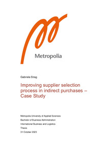 Due to various sectors experiencing growth in outsourcing, firms, to achieve business success, need to recognise how increasingly critical it is to select the right suppliers and how important collaboration with them has become over the years. The question “How to improve the supplier selection process in indirect purchases of a company?” is answered in this paper. A global automotive company’s regional business unit, headquartered in the Finnish Capital Region, and comprising Nordic countries and the Baltic States, is used as the case study. Its supplier selection process was compared to several supplier selection processes elaborated on in the literature on the subject. To collect and synthesise various perspective on the supplier selection topic, an exploratory research method was used, where purchasing- and supplier selection concepts were explained. Supplier selection criteria and methods were also examined. Empirical and problem-solving method was employed to address the inefficient/time consuming supplier selection process in the case company. Utilising these approaches not only allows conclusions and recommendations to be based on evidence, but also to contextualise them with reference to relevant literature. This study suggests that the case company’s supplier selection process can be optimised by implementing a universal SOW (scope of work) document format for internal customers to fill in and deliver to the buyer when a purchasing decision is made. This would allow for clearance and transparency regarding what exactly is required by the buyer to proceed with the supplier selection process, and in turn, with the entire purchasing process. An improved supplier selection model is proposed to address the shortcomings of the one the case company is currently utilising. Approval stages during the supplier selection process are to be either limited or eliminated, which allows for significant saving of time.