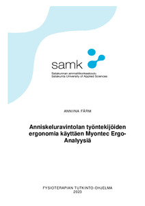 Ergonomia on ollut viime aikoina puheenaiheena julkisissa keskusteluissa ja siihen onkin työpaikoilla alettu kiinnittämään huomiota. Siitä on tehty myös erilaisia tutkimuksia, mutta anniskeluravintolat ovat jääneet tässä vähemmälle huomiolle. Tässä opinnäytetyössä haluttiinkin selvittää, millaista työergonomia on tietyn Satakuntalaisen anniskeluravintolan työntekijöillä Myontecin ErgoAnalyysin avulla.