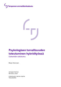 Opinnäytetyössä selvitettiin psykologisen turvallisuuden toteutumista etäpainotteisessa hybridityössä. Selvitystyö tehtiin isolle kansainväliselle yritykselle, joka halusi pysyä työssä anonyyminä. Kohteena oleva työyhteisö koostuu asiantuntijoista ja aiheeseen perehdyttiin esihenkilön näkökulmasta.
