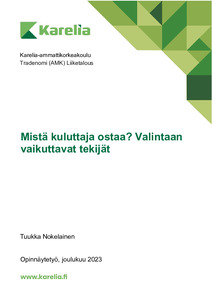 Opinnäytetyön tavoitteena oli perehtyä syihin, jotka vaikuttavat kuluttajan ostopaikan valintaan. Työssä käydään läpi myös kuluttajan ostokäyttäytymistä ja siihen liittyviä tekijöitä sekä ostoprosessia. Tämän lisäksi tarkastellaan yritysten markkinointia ja sen osallisuutta kuluttajan ostokäyttäytymiseen.
